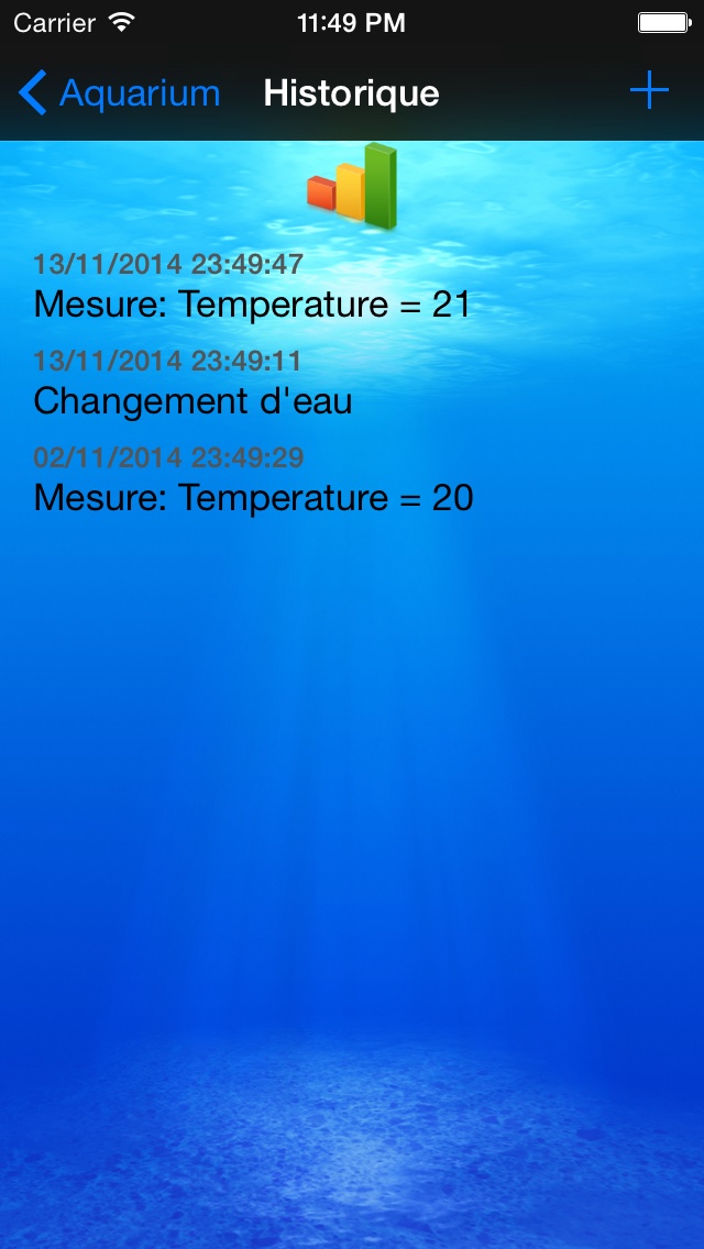 Gérez autant d'aquariums que vous voulez, notez les différentes mesures d'eau, les changements de diverses choses et visualisez le tout sur un graphique.